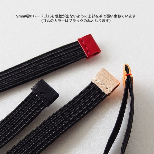 ゴムバンドはブラック(ハードゴム)のみとなります。革部分はお好きなカラーをお選びください。